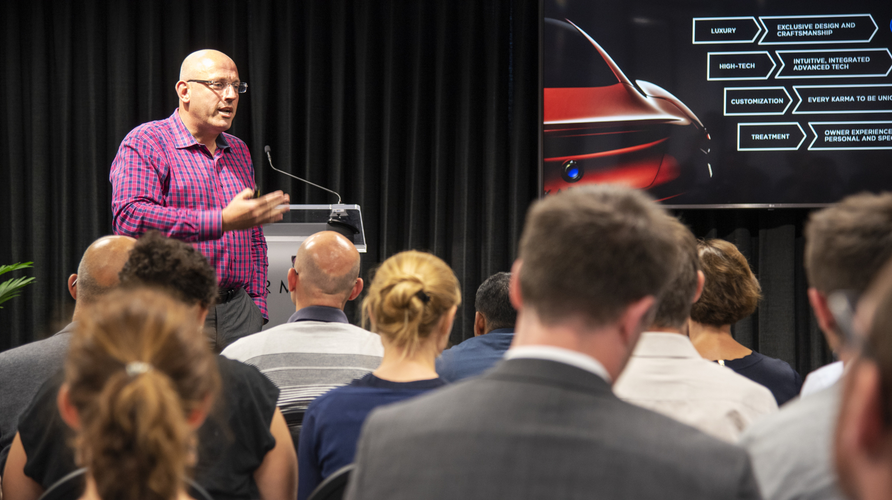USC alum and Karma Chief Vehicle Engineer, Axel Radermacher delivered an inspiring keynote on Karma leadership. Panel discussions with current MBA resident and USC alumni Edward Djrbashian, Erik Augillon, and Garren Salibian (current student in MBA) discussed leveraging the talents of our passionate engineering team to deliver luxury electric vehicle experiences through innovative design, technology and customization.