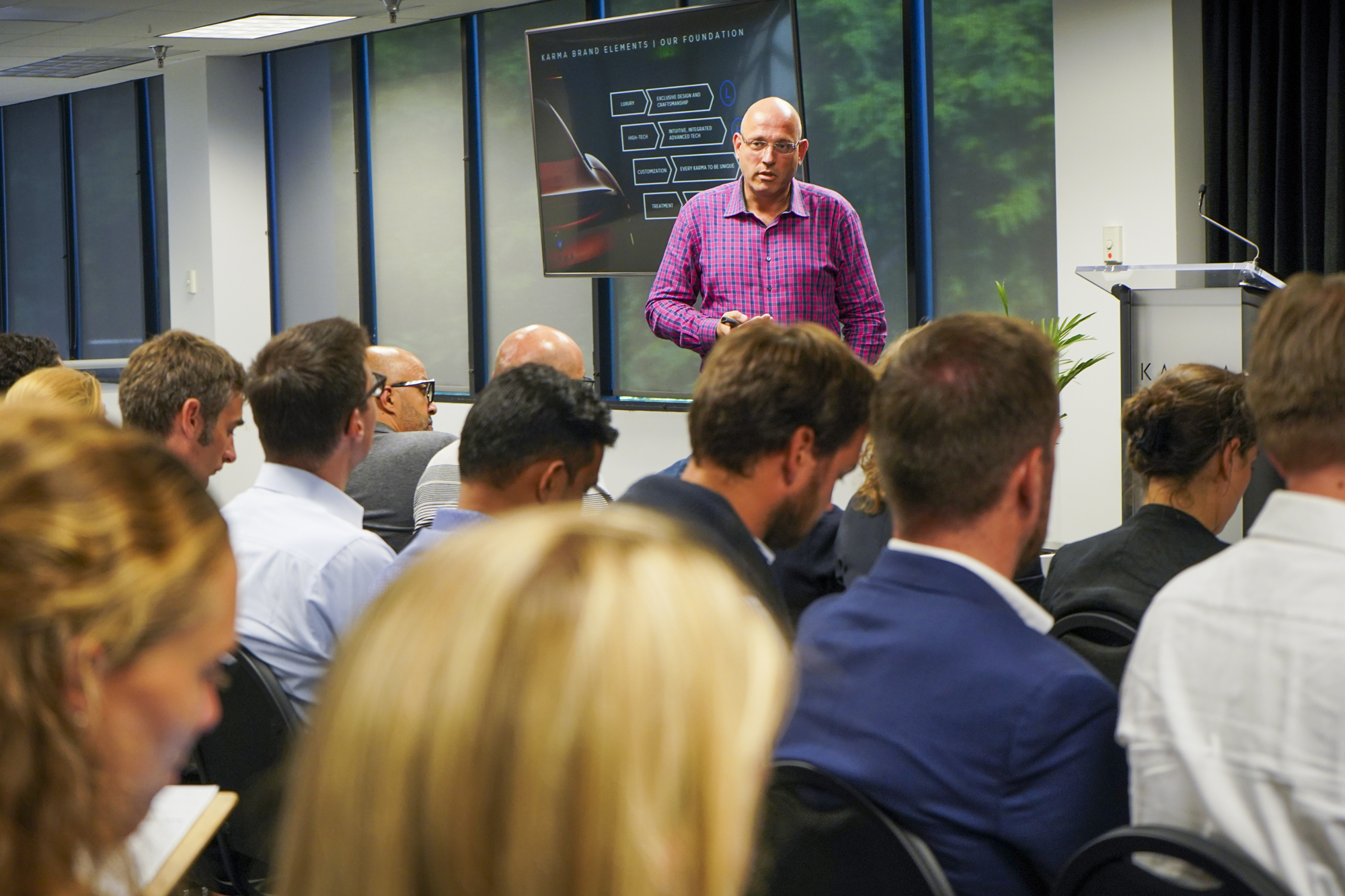 Following the facility tour, students sat down with Karma executives and former UCI and USC Karma alumni for a Q&A session. Engaging keynotes and interactive panel discussions featured Joost de Vries, Karma Vice President of Global Sales and Customer Experience, presenting Karma as an open-platform company. Daniel Bateson (current student in eMBA), also spoke on behalf of Karma to provide invaluable advice on career skillsets that will pave the road towards a successful career.